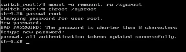 5.Digite o seguinte comando para remontar o sistema de arquivos raiz como leitura e gravação: